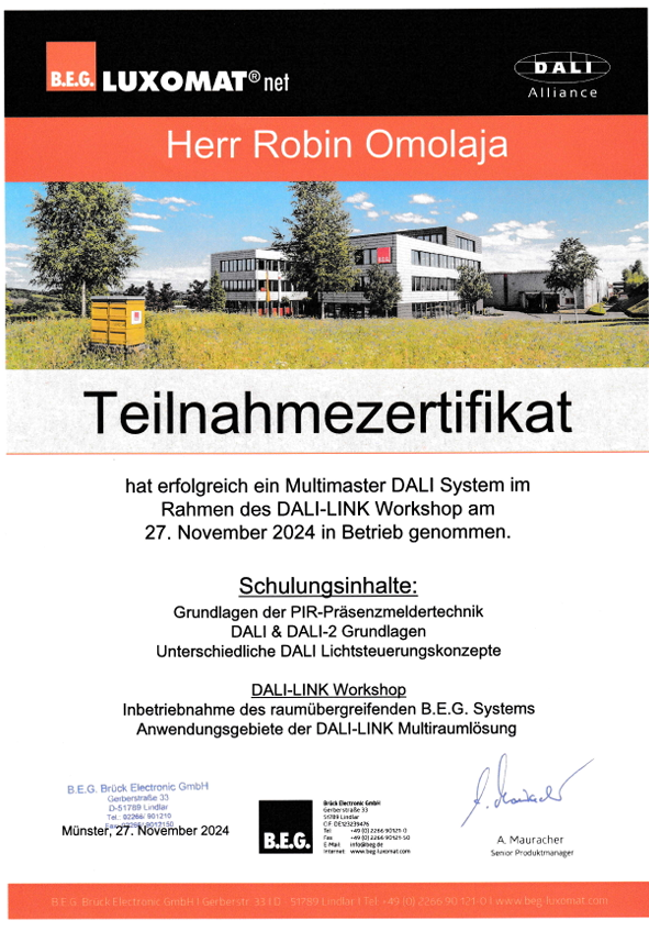 Hallo, mein Name ist Robin Omolaja. Seit meinem 16. Lebensjahr arbeite ich im Elektrohandwerk. Nach meiner Ausbildung, die ich in verkürzter Zeit von drei Jahren erfolgreich abgeschlossen habe, sammelte ich umfassende praktische Erfahrungen als Geselle und vertiefte meine Kenntnisse in allen wichtigen Bereichen der Elektrotechnik. Im Jahr 2025 habe ich meinen Meistertitel in Elektrotechnik erworben und bilde seither die Grundlage für meine Arbeit als Gründer von RemiTech.